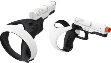 Maxx Tech PSVR2 pistolkontrollgrepp förbättrar ditt VR-spel med komfort. Designad för PSVR2, denna svarta och vita dubbla handkontrollset har en ergonomisk design för ett bekvämt grepp och exakt kontroll under intensivt spelande.Läs mer om produkten