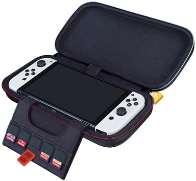 Nintendo Switch Deluxe Travel Case: Super Mario blir ett bekvämt hem för din Nintendo Switch, Nintendo Switch OLED eller din Nintendo Switch lite. Det kommer utrustat med ett ställ och ett spelkortsbibliotek för 5 spelkort sammanlagt.Läs mer om produkten