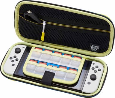 PowerA Peely-skyddsfodralet är designat för Nintendo Switch eller Switch Lite. Den har ett robust yttre skal med ett mjukt foder inuti och inbyggd förvaring för nio spelkort, så att du kan bära med dig dina favoritspel vart du än går.Läs mer om produkten