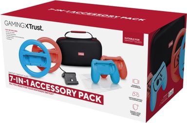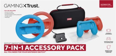 Tillbehören till Trust GXT1249 Nintendo Switch inkluderar ett 7-i-1-tillbehörspaket för Nintendo Switch och Switch OLED, vilket består av 2 Joy-Con-grepp, 2 rattar, ett härdat glasskydd, ett laddningsställ och ett hårt fodral.Läs mer om produkten