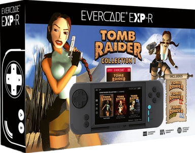 Evercade EXP-R handhållen spelkonsol och Tomb Raider Cartridge-paketet erbjuder en bärbar, högkvalitativ handhållen spelupplevelse fokuserad på fysiska retrospelsamlingar, med en IPS-skärm, ett 5-timmars batteri och en Tomb Raider Cartridge.Läs mer om produkten
