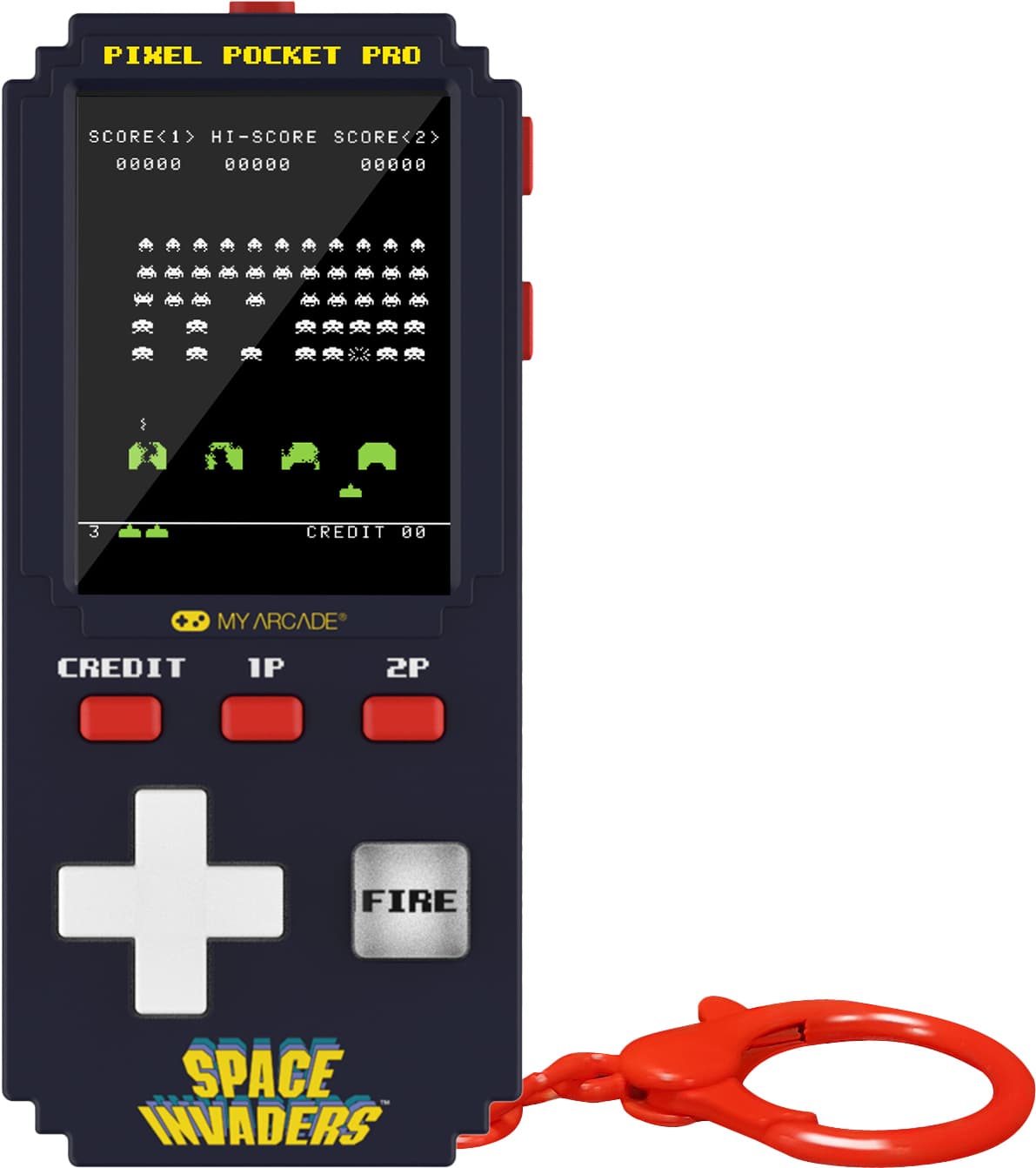 My Arcade Pixel Pocket Pro Space Invaders bärbara spelkonsol erbjuder portabel spelupplevelse med 2-tums skärm, förinstallerade Space Invaders-spel, användarvänliga kontroller och kompakt design för nostalgiskt spelande på språng.Läs mer om produkten
