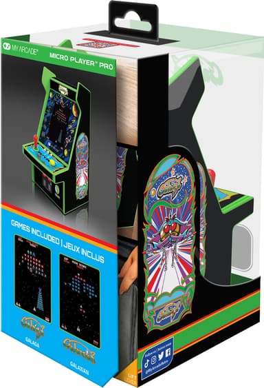 Återupplev dina barndomsminnen med My Arcade Micro Player Pro 6.7” Galaga 2-i-1 Retro spelkonsol, som erbjuder en arkadupplevelse i ditt hem. Med en högupplöst skärm och kompakt storlek.Läs mer om produkten