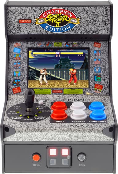 Återupplev dina barndomsminnen med My Arcade Micro Player Pro 7.5” STreet Fighetr II Retro spelkonsol, som erbjuder en arkadupplevelse i ditt hem. Med en högupplöst skärm och kompakt storlek.Läs mer om produkten