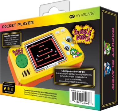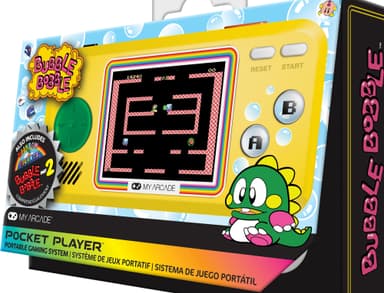 Återupplev din barndom med My Arcade Pocket Player Bubble Bobble handhållen konsol, som erbjuder en arkadupplevelse i handen. Med högupplöst skärm, kompakt storlek och 3 olika spel.Läs mer om produkten