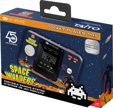 Återupplev din barndom med My Arcade Pocket Player Pro Space Invaders handhållen konsol, som erbjuder en arkadupplevelse i handen. Med 2,75” högupplöst skärm och kompakt storlek.Läs mer om produkten