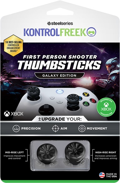 Kontrol Freek FPS Galaxy Xbox tumgrepp är designade för att förbättra sikte och rörelser i FPS-spel. De har ett set med dubbla höjder där ett mellanhögt grepp ger bättre kontroll över vänster spak och ett högt grepp ger ökad precision för höger spak.Läs mer om produkten