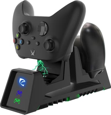 Piranha x GhostGear Xbox universalladdare är en dubbel laddstation för handkontroller som är kompatibel med Xbox X och Xbox One. Har magnetiska induktionsplattor och LED-indikatorer för laddningsstatus.Läs mer om produkten
