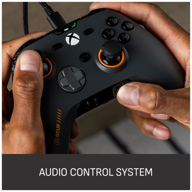 SCUF Valor Pro Xbox/PC-kontroll förbättrar din spelprestation med anti-drift-tumkontroller, omedelbara avtryckare, fyra bakre paddlar, halkfritt grepp och inbyggda ljudkontroller för sömlöst och precist gameplay.Läs mer om produkten