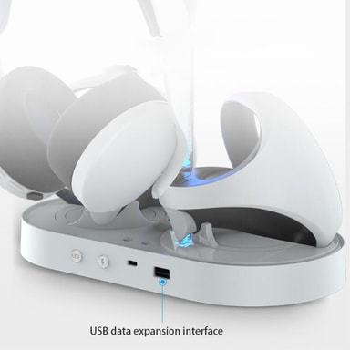 Denna produkt kan användas för VR-headset, VR-handtag och lagring av headset. Denna produkt kan användas för laddning av VR-handtag. Att använda magnetisk laddning är bekvämt och snabbt. Med 1 USB-dataexpansionsgränssnitt. Bländande RGB-ljuseffekt