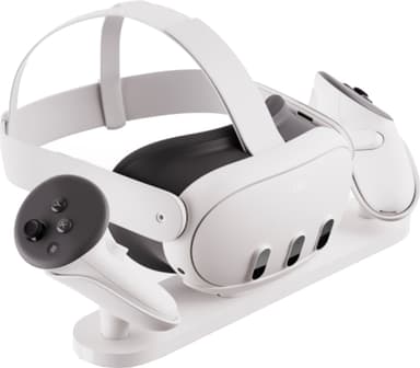 Var alltid redo för lite VR-action tack vare Meta Quest 3 laddningsdocka, en allt-i-ett trådlös enhet som kan ladda dina Meta Touch Plus-kontroller och Meta Quest 3 VR-headset. Du kan se laddningsstatus på LED-lampan.Läs mer om produkten
