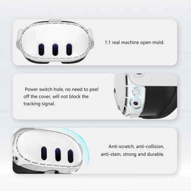 Skyddar din Meta Quest 3 från repor, oavsiktliga fall och smuts och håller den i perfekt skick. Designad med exakta öppningar för enkel åtkomst till alla knappar och portar, inklusive strömbrytaren, utan att behöva ta bort fodralet.