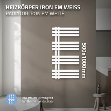 Design badrumsradiator Iron EM 500x1000 mm Vit LuxeBathLäs mer om produkten