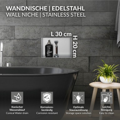 Duschkar 30x20 cm silver rostfritt stål infälld ram Väggmonterat hörn Duschkar LuxeBathLäs mer om produkten