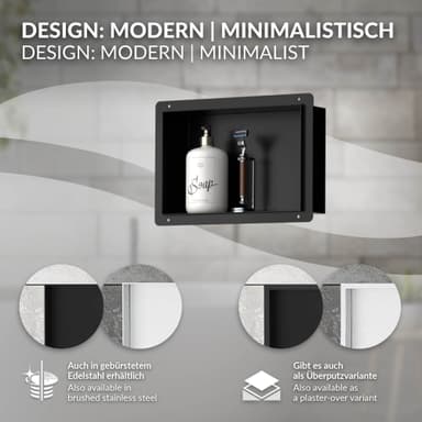 Duschkar 30x20 cm svart rostfritt stål nedsänkt ram väggfördjupning Duschkar LuxeBathLäs mer om produkten