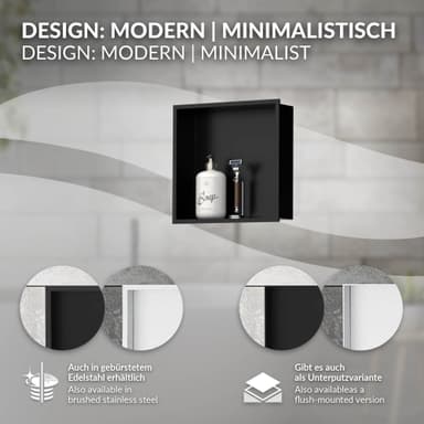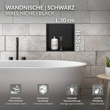 Duschkar 30x30 cm svart rostfritt stål LuxeBath