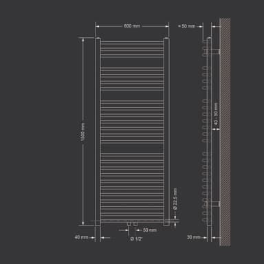 ECD Germany badrumsradiator - 600 x 1500 mm - vit, central anslutning