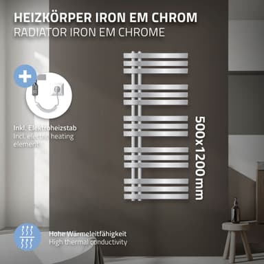ECD Germany Iron EM design badrumsradiator med elvärmeelement 900W - 500 x 1200 mm - krom - design radiatorpanelLäs mer om produkten