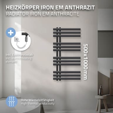Elradiator 300W antracit Järn EM modell med radiator Handduk 500x1000Läs mer om produkten