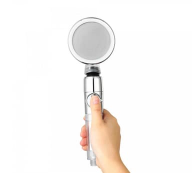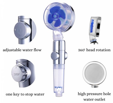 Detta duschhuvud använder en propellerfläkt som roterar för att öka vattentrycket med 200% mer än det traditionella duschhuvudet samtidigt som vattenförbrukningen minimeras med 40%. Med den banbrytande mikromunstyckstekniken kan ett högtrycksduschhuvud öka vattentrycket avsevärt genom att öka hastigheten på vattenflödet och därigenom öka vattentrycket.