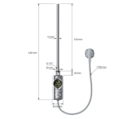 ML-Design Värmeelement 300W Krom med termostat och LCD-display, elektronisk temperaturreglering och timerfunktion, värmepatron för badrumLäs mer om produkten