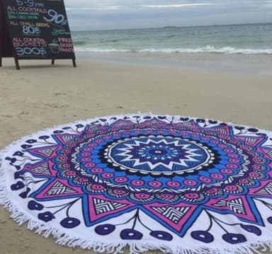 Denna handduk/picknickfilt är perfekt på din utflykt. Den är stor, mjuk, absorberar fukt och torkar snabbt. Du kan exempelvis använda den på stranden, på picknicken eller som yoga-matta. Det är den perfekta sällskapsfilten då många får plats. För extra trevlig känsla har handduken/filten tofsar.