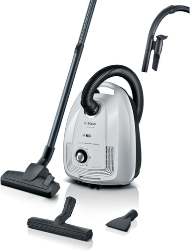 Den kompakta Serie 4 från Bosch är en högpresterande påsdammsugare tillverkad i Tyskland, med smart design som möjliggör enkel rengöring och bekväm hantering. Den är kraftfull och designad så att dina tillbehör alltid finns nära till hands - för fantastiskt resultat.