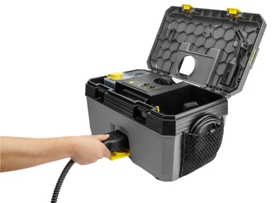 Kärcher SG 4/2 Classic ångtvätt 10923010 är en kompakt och lätt rengöringsapparat som värms upp på 3 minuter och använder 4 bars ångtryck för att rengöra smuts och smuts från sådana ytor som kakel, spisar, ugnar, bänkar och mer.Läs mer om produkten