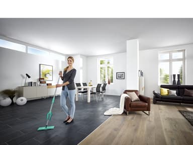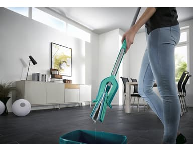 Picobello golvmopp med teleskopskaft är praktisk och enkel att hantera. Med den enkla pressmekanismen på handtaget kan du enkelt pressa ut vattnet ur duken utan att behöva böja dig eller stoppa ner händerna i det smutsiga vattnetLäs mer om produkten