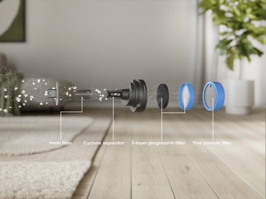 • Längre prestanda och filterlivslängd med ny cyklonisk separation.