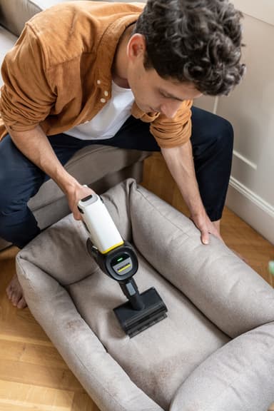 Kärcher VC 4 Cordless myHome Pet skaftdammsugare 11986330 erbjuder 2 prestandalägen, ett 3-stegs filtreringssystem, en 650 ml dammbehållare, 30 minuters batteritid i ett bekvämt och lätt paket och tillbehör för att ta bort djurhår.Läs mer om produkten