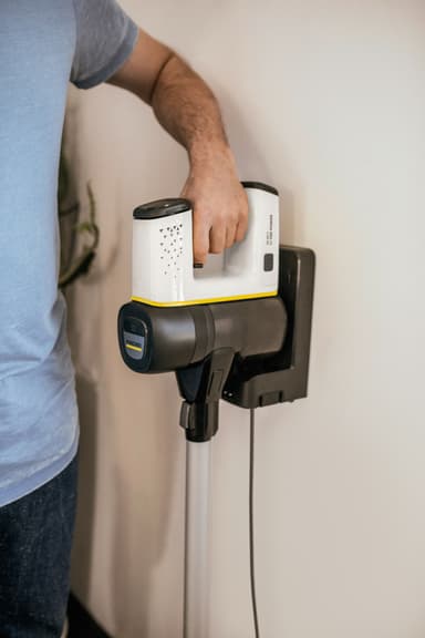 Rengör enkelt golven från damm, skräp och djurhår med Kärcher VC 6 Cordless ourFamily Pet skaftdammsugare 11986730 med 50 minuters användningstid, 3-stegs filtrering, 2 effektlägen, 800 ml dammbehållare och användbara tillbehör.Läs mer om produkten