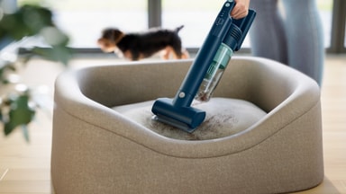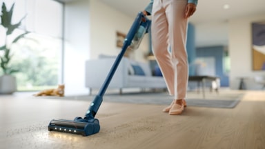 Philips 5000-seriens sladdlösa skaftdammsugare XC5041/01 har Aqua-läge för våta fläckar och ett TriActive LED-munstycke som fungerar på alla ytor. Den går i upp till 60 minuter i Eco-läge för oavbruten rengöring.Läs mer om produkten