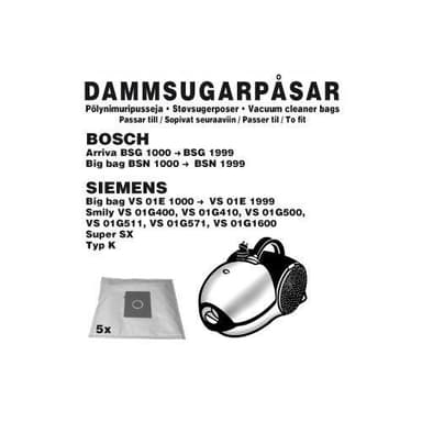 Svensktillverkade dammsugarpåsar i syntetfiber. Fiberpåsar filtrerar bättre än vanliga papperspåsar och behåller samma sugstyrka tills det att påsen är full.