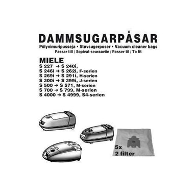 Svensktillverkade dammsugarpåsar i syntetfiber. Fiberpåsar filtrerar bättre än vanliga papperspåsar och behåller samma sugstyrka tills det att påsen är full.