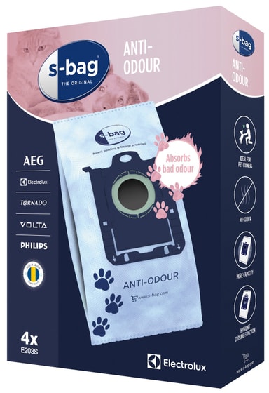 Svensktillverkade S-bag Anti-Odour dammsugarpåse E203S ger dig hög kapacitet och effektiv rengöring av ditt hem samtidigt som den tar bort oönskad doft från t.ex. husdjur. Perfekt alternativ för djurägaren.Läs mer om produkten
