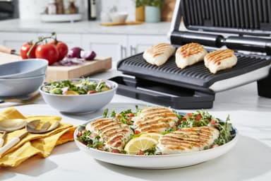 Grilla, grädda eller stek flera rätter för din familj eller vänner med en OBH Nordica Optigrill XL bordsgrill GO724DS0. Den är utrustad med 9 matlagningsprogram, manuellt läge med 4 värmeinställningar och en gjuten aluminiumbricka.Läs mer om produkten