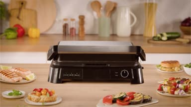 OBH Nordica SuperGrill bordsgrill GO510DN0 erbjuder grillning, stekning och bryning på en 600 cm² yta, med en plan öppen design, non-stick-beläggning, diskmaskinsäkra plattor, justerbar termostat och värmetåliga sidor.Läs mer om produkten