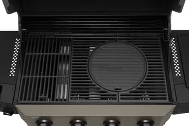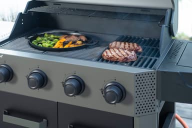 Mustang Augusta 4+1 gasolgrill 641568 har 16,5 kW effekt, fyra gjutjärnsbrännare och en sidospis med grill. Den låter dig laga flera rätter samtidigt och har inbyggd termometer samt askuppsamlare.Läs mer om produkten
