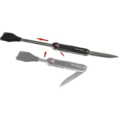 Det multifunktionella magnetiska redskapssetet består av 5 nödvändigheter för perfekt grillning.Avtagbara och teleskopiska redskap – gaffel, vändare, flasköppnare, silikonborste och stekkniv.Kompakt och lätt att bära.Läs mer om produkten