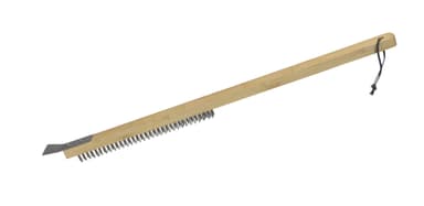Rengöringsborste med skrapa som gör det enkelt att rengöra pizzastenen. Längd 57 cm, med bambuhandtag och upphängningsögla i läder.Läs mer om produkten