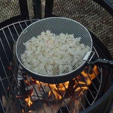 Popcorngrytan är enkel att använda och utformad för att tömmas utan risk för att bränna sig. Dess hopfällbara design gör den idealisk för friluftsliv. Fyll den med smör, olja och popcorn för att skapa barnens favorit – eller använd den som en vanlig stekpanna för mångsidig matlagning i naturen.