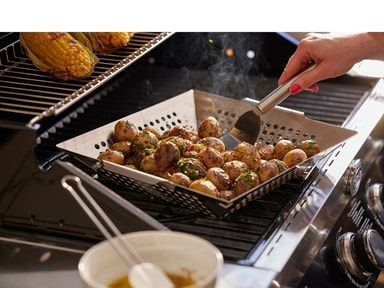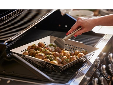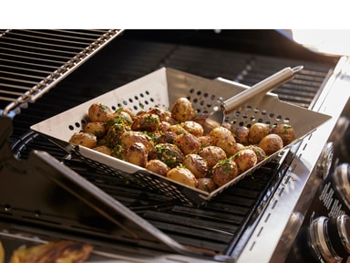Grillbrickan är perfekt för grillning av skivade grönsaker, frukt eller kött och för tillagning av varma kastanjer. Tillverkad av en perforerad rostfri stålplatta för direkt värmeöverföring till maten som ska grillasLäs mer om produkten
