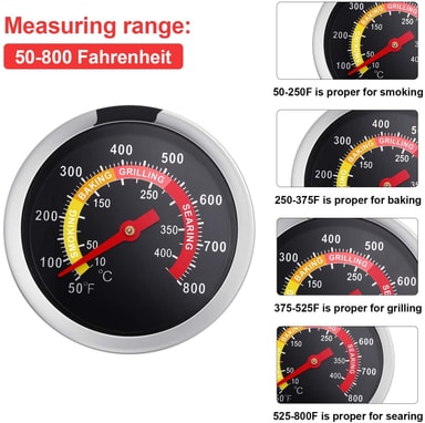 Användarvänlig och enkel att installera: Den analoga stektermometern är lätt att avläsa och smidig att installera, både när du skruvar ihop termometern samt när du applicerar den till din grill eller ugn.