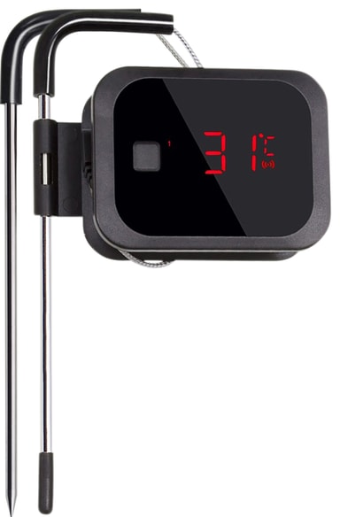 FCC BBQ digital grilltermometer FCCA10031 med inbyggd Bluetooth, smart app, 2 prober och 14 olika inställningar hjälper dig att avläsa en exakt temperatur på vilken rätt du än grillar.Läs mer om produkten