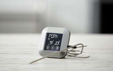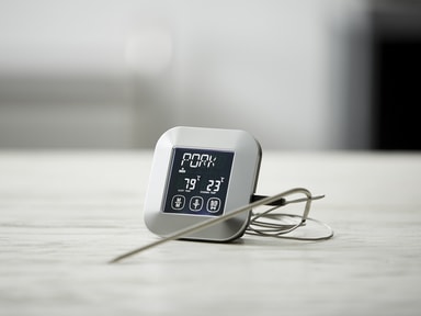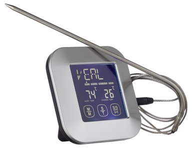 Stektermometer m timer Funktion. Digital stektermometer med 8 olika inställningar: Nötkött, lamm, kalvkött, hamburgare, fläsk, kalkon, kyckling och fisk. Ljudsignal när den önskade temperaturen nås. Inbyggd timer och magnet på baksidan samt fotLäs mer om produkten