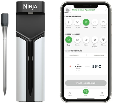 Anslut Ninja ProChef trådlös termometer WP100EU till dess app och få av en bekväm matlagning. Den tål temperaturer upp till 370°C, är vattentät och ger liveuppdateringar via appen för mer exakta matlagningsresultat.Läs mer om produkten