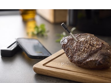 Denna trådlösa stektermometer ger exakta mätningar av både kärn- och lufttemperatur. Stick in nålen i köttet och kontrollera tillagningsprocessen via förvaringsboxen och appenLäs mer om produkten