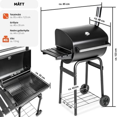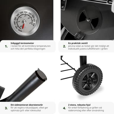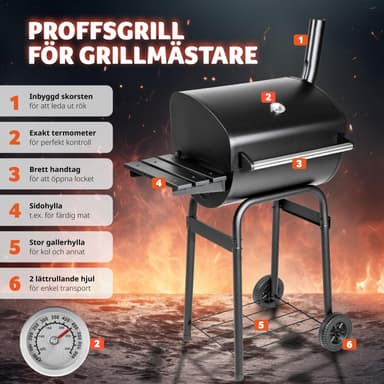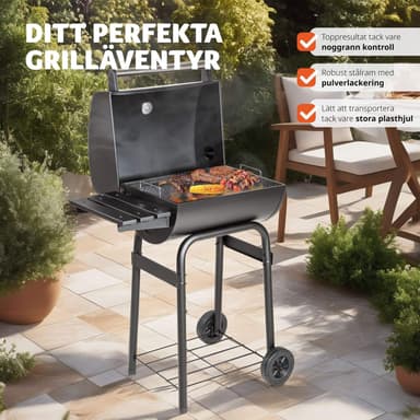 Denna träkolsgrill från Tectake kan användas till fisk, kött, grönsaker eller fågel – grillen och erbjuder oanade BBQ möjligheter och nya smakupplevelser. En termometer på ovansidan visar temperaturen, som kan regleras exakt med de tillgängliga luftöppningarna. Den enkla och flexibla användningen av vår träkolsgrill garanterar en riktigt härlig grillupplevelse. Köp din kolgrill idag hos Tectake.