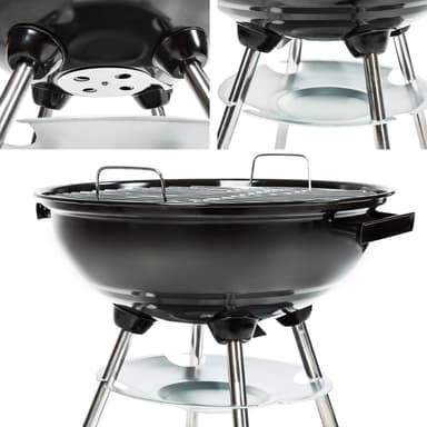 Med denna prakiska klotgrill från Tectake kan du göra mycket. Det förkromade grillgallret med 41,5 cm diameter kan användas för grillsugna sällskap upp till 6 personer utan problem. Grillen har en värmeskyddande beläggning och är mycket lätt att rengöra. Den har ett ventilationsspjäll nedtill och ett lock med luftventil, som gör att du kan använda vår klotgrill till indirekt grillning. Beställ hem din klotgrill från Tectake.